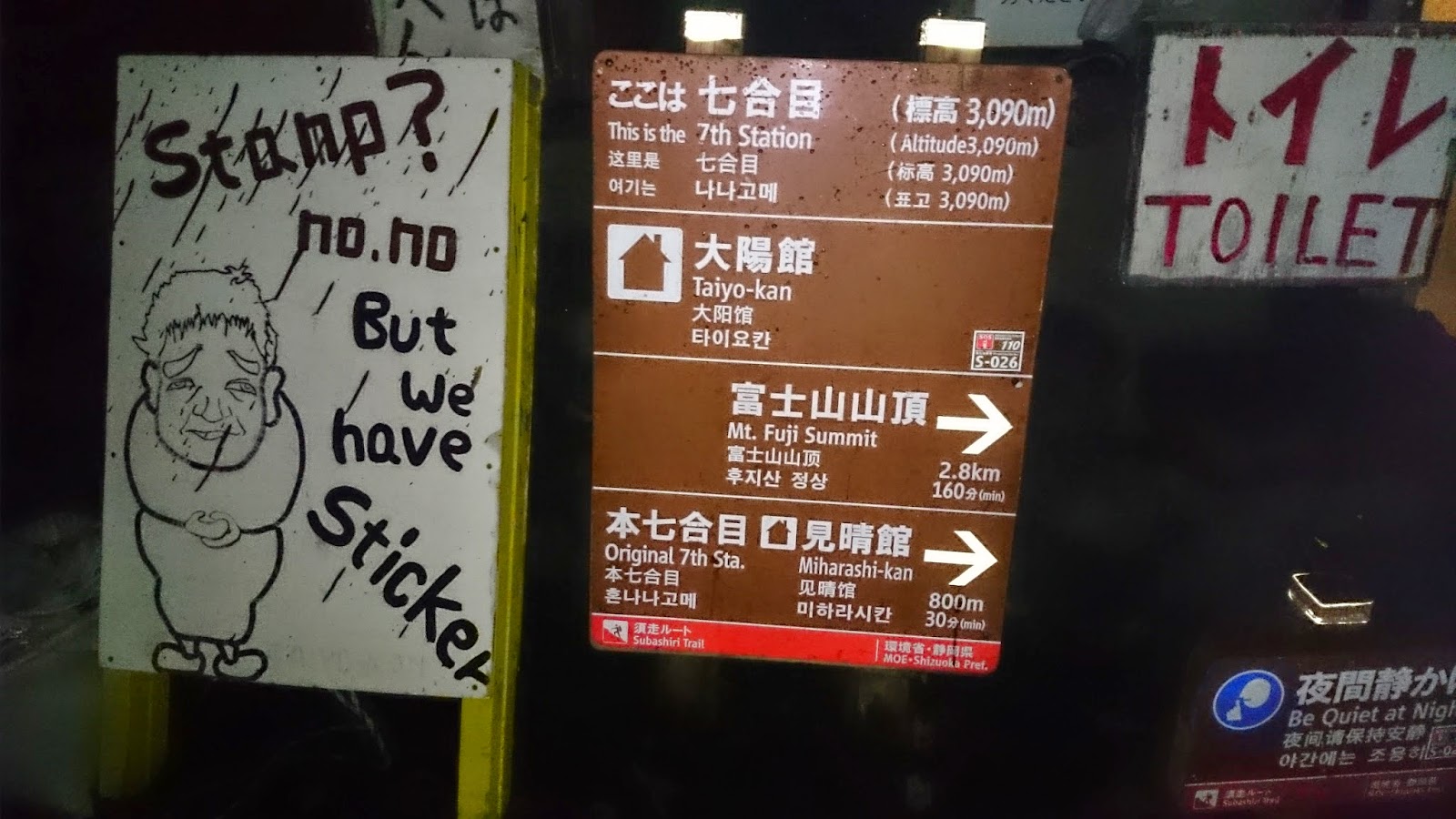 Les previsions de temps eren terribles. La veritat que estàvem una mica acollonats ja que es preveia pluja intensa tota la nit. Però al final, ens ha fet una nit espectacular…fins a l’estació 8. Fins llavors, hem anat pujant tranquil·lament gairebé sols contemplant el infinits del cel de Japó. ( Podríem dir que completament sols, tret d’algun que altre perdut com nosaltres que ascendia de nit!)