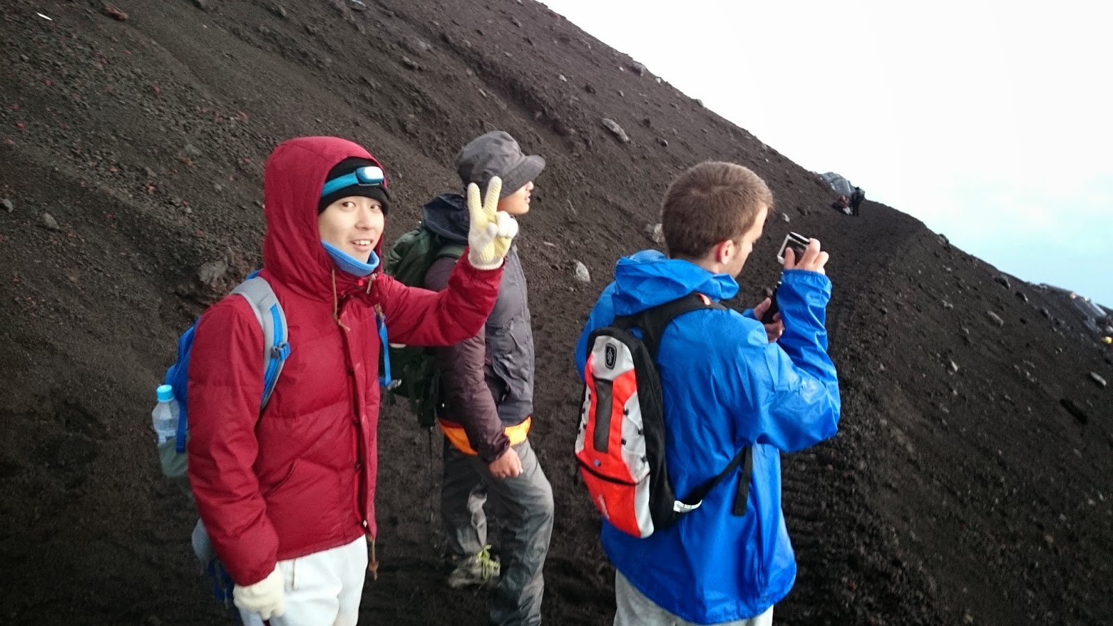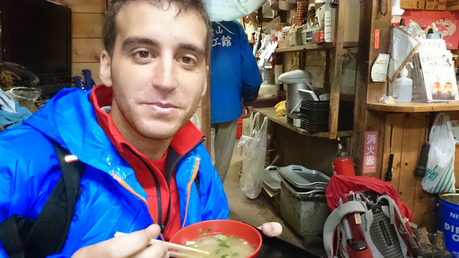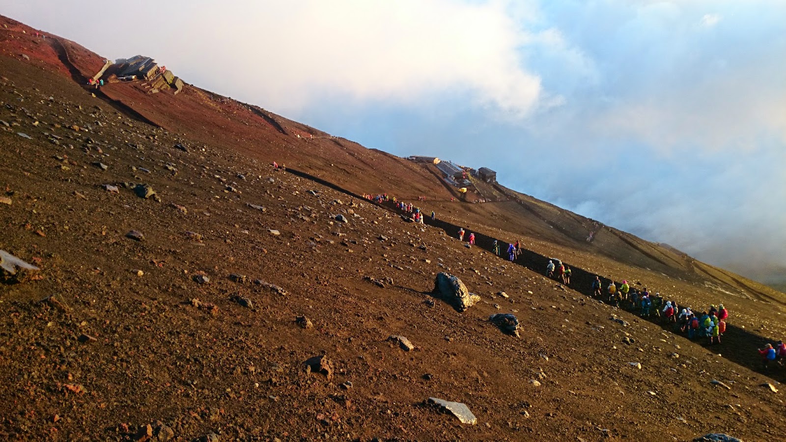 Un experiència increïble. Això si, a partir de l’estació 8, comença lo bo. En aquesta estació, s’ajunten les vies Subashiri amb la de Yoshida, i la cosa canvia. La pujada tranquil·la, a bon ritme, passa a ser una processo de peregrins. De la 8ª estació a la cima, ha estat una mica calvari. El temps ha canviat completament i les previsions meteorològiques es van complir. Pluja forta amb una mica de vent, ascens lent fent cua a la japonesa i amb fred… molt de fred!