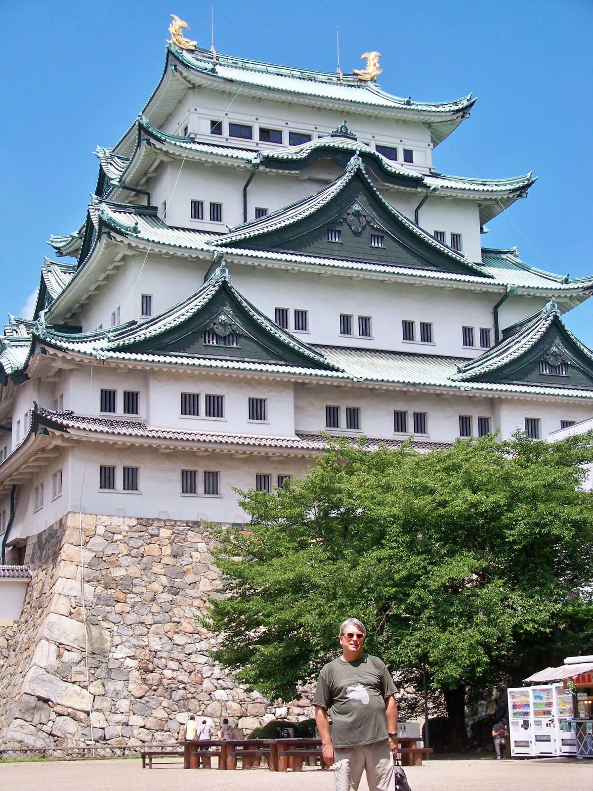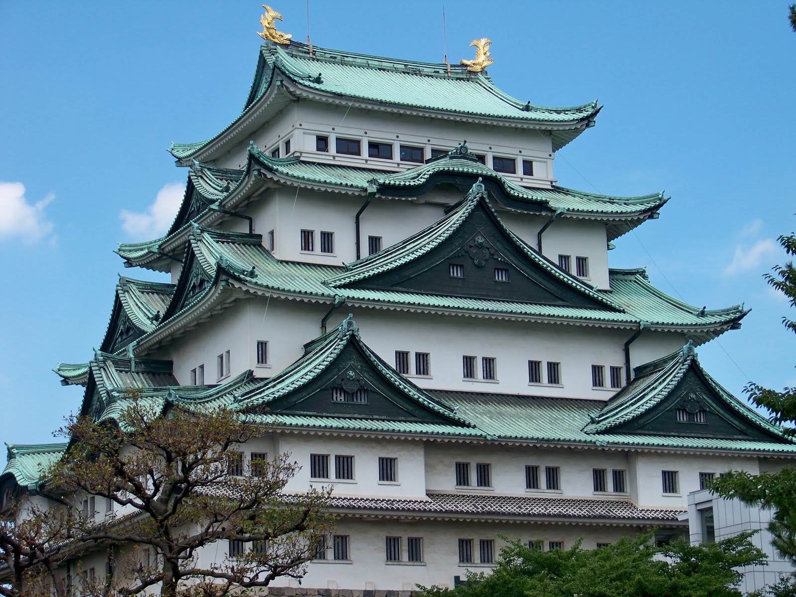 A Shiyakusho ens espera el Castell de Nagoya-jo. Construït per Tokugawa Ieyasu per al seu fill en el 1612, és famós per els seus delfins daurats ( Tot s’ha de dir i després ho veureu que semblen més unes carpes que uns delfins…i carpes lletges a més no poder.). Aquests delfins els Shachi-hoko, coronen a torre principal.