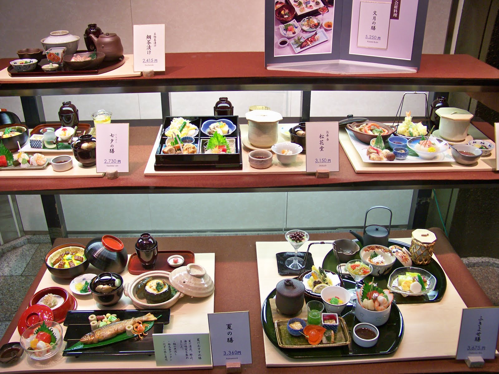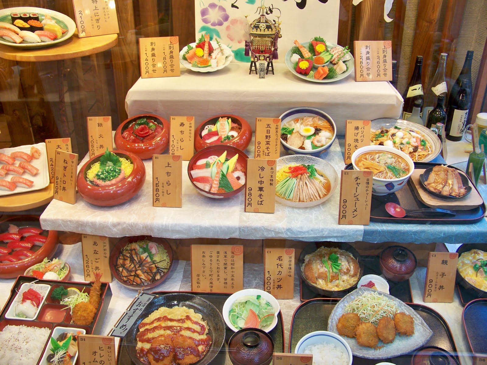 A l’hora de triar menú gaire bé sempre saps el que vols menjar, doncs molts restaurants tenen un aparador en els que hi han els diferents plats muntats de plàstic, realment semblen de veritat, altres tenen una carta amb les fotografies del plat, els que no complien amb aquestos requisis, s’estalviaven la nostra visita.