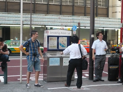 Al carrer no es permet fumar, hi ha de tan en tan una “smoking Area”, on hi ha cendrers i els viciosos es paren a fumar, en canvi es pot fumar en tots els restaurants, pachinkos i sales de jocs.