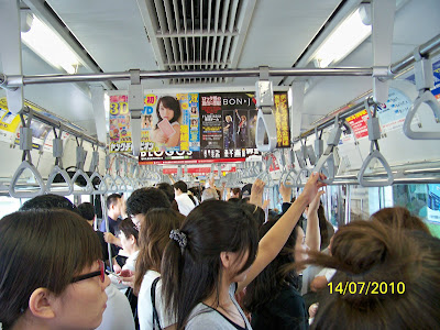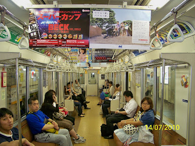 Com sempre i a tot arreu, tot net cap pintada, cap grafíti (suposo que no entendríem que algú pinti fora de casa seva, en un espai públic), riuades de gen, però silenci, cadascú a la seva, ni et miren, sempre mirant el mòbil, escoltant música, consultant Internet, però ningú parlant pel mòbil, en els trens està expressament prohibit. Hi ha un vagó on hi ha una cabina per fer trucades. En els trens, també hi ha un vagó silenciós, on els anuncis de les parades, tan sols es fan per la pantalla, sense veus anunciadores.