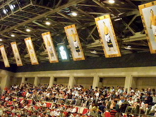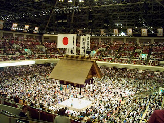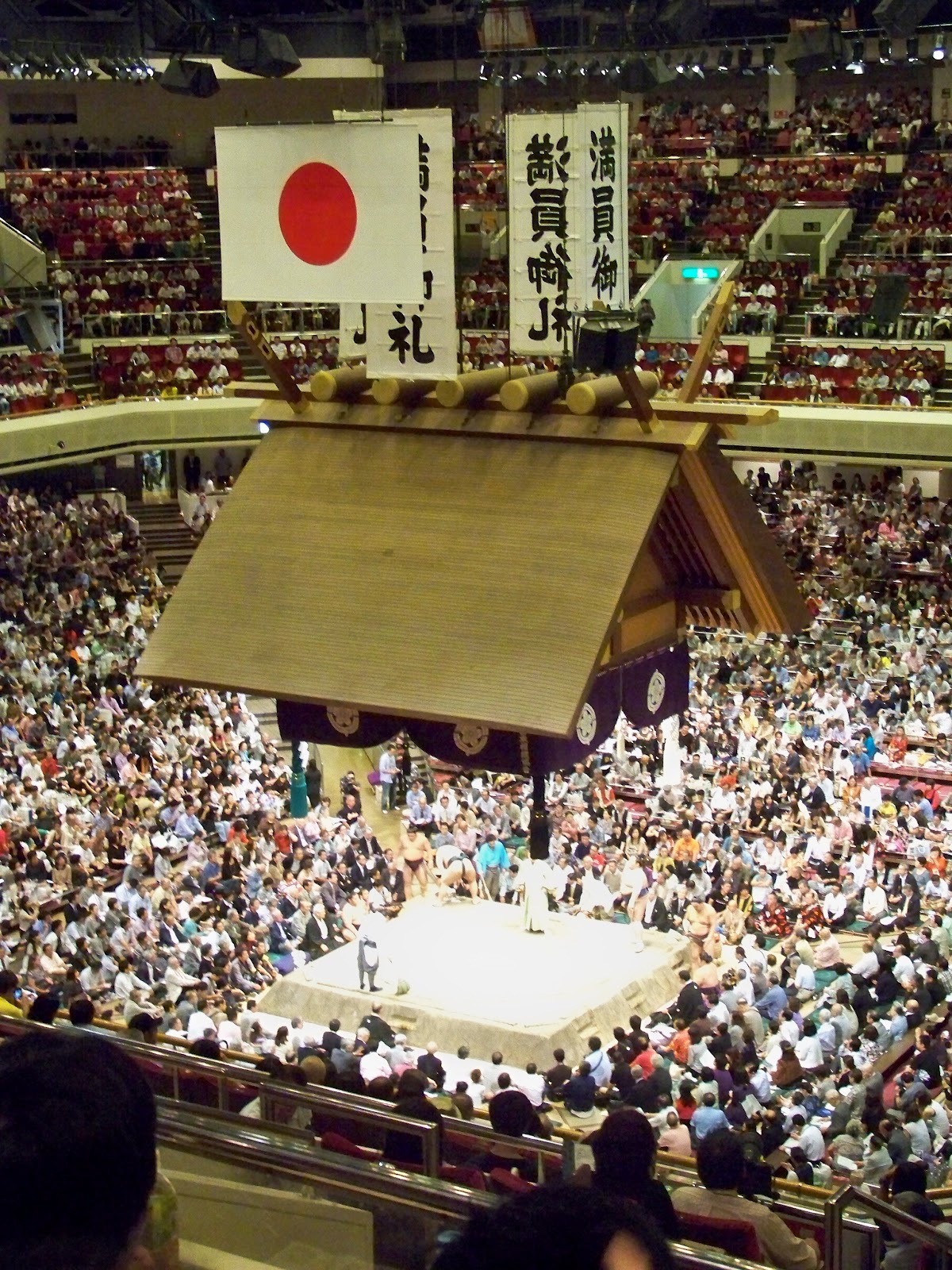 Situat a prop de Akihabara a la parada de metro de Ryogoku es troba l’impressionant estadi de sumo Ryogoku Kokugikan. Un cop vaig entrar i vaig trobar el meu lloc a la segona planta. ( No es gens fàcil que diguem, tot en kanjis que estan a un nivell d’escriba…. ) vaig gaudir de millors vistes del que em pensava.