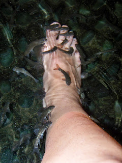 Realment esgarrifós, no ho tornaré a fer mai més. És molt desagradable veure com els Japonesos ficaven els peus i tenien 4 o 5 peixets, però al ficar-los jo.. en tenia com a 1000! Quina sensació tant, tan, tan… !”·$%&/()”·$%&/()=