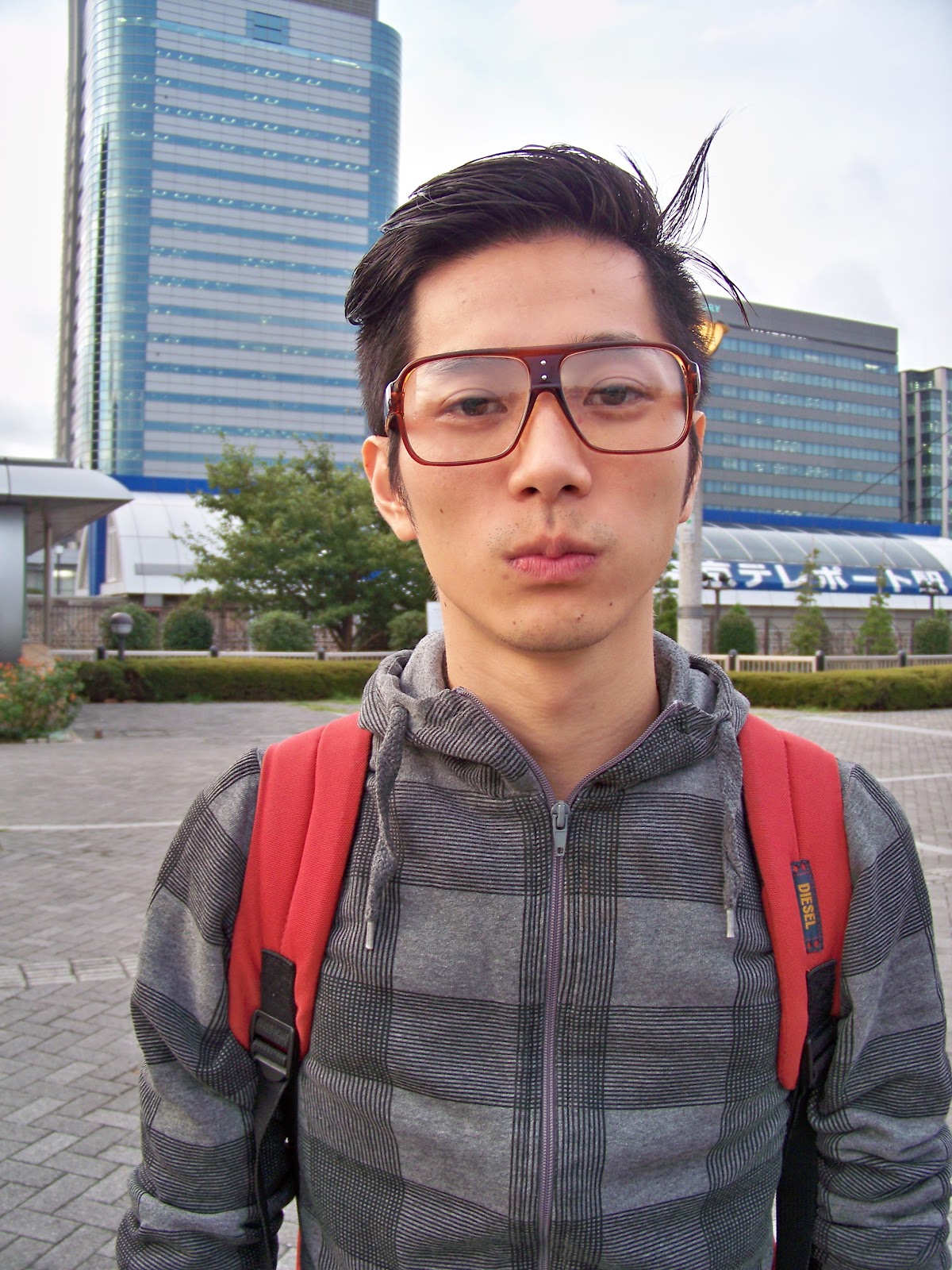 I bé després de dinar, vam comprar unes ulleres de camuflatge i en Shun va cambiar el look ficant-se gomina i canviant-se de roba per tornar a intentar entrar al onsen. Aquí teniu la foto final del meu amic: