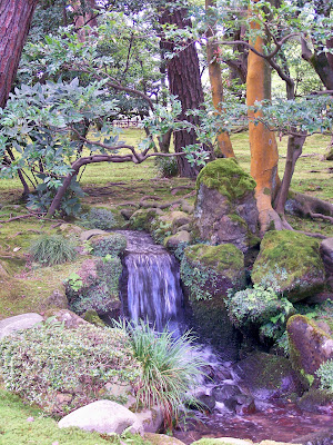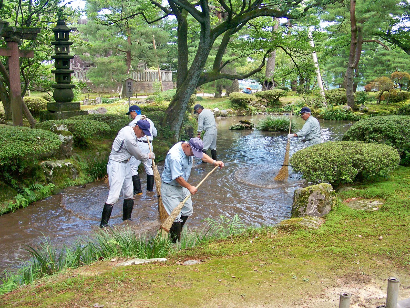 El jardí de Kenroku-en és considerat un dels tres millors jardins de Japó. Amb el seu nom Kenroku (sis combinacions) considera els sis ideals per a un bon jardí: Amplitud, bonics paisatges, disseny dedicat, serenitat, venerabilitat i frescor proporcionada per les corrents d’aigua. La veritat que aquests sis principis els compleix sobradament, és un parc molt agradable on es respira una tranquil·litat molt agradable amb més de 12.000 arbres de més de 150 varietats. Veritablement espectacular.