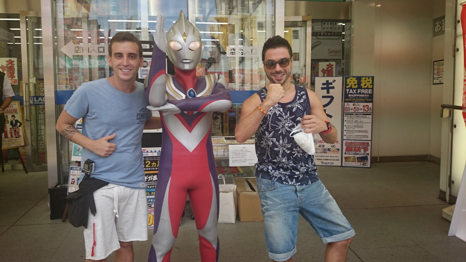 Passejada hipnotitzant, sota un marc d’epilèptics centenar de llums de colors fins a trobar-nos amb l’edifici de “Sega World”. Edifici de 7 plantes repletes de vici. Jocs, jocs, i més jocs. I entre tots… la màquina de les fotos sexys que et fan els ulls grossos… i clar, no ens hem pogut estar de fer-nos un book.