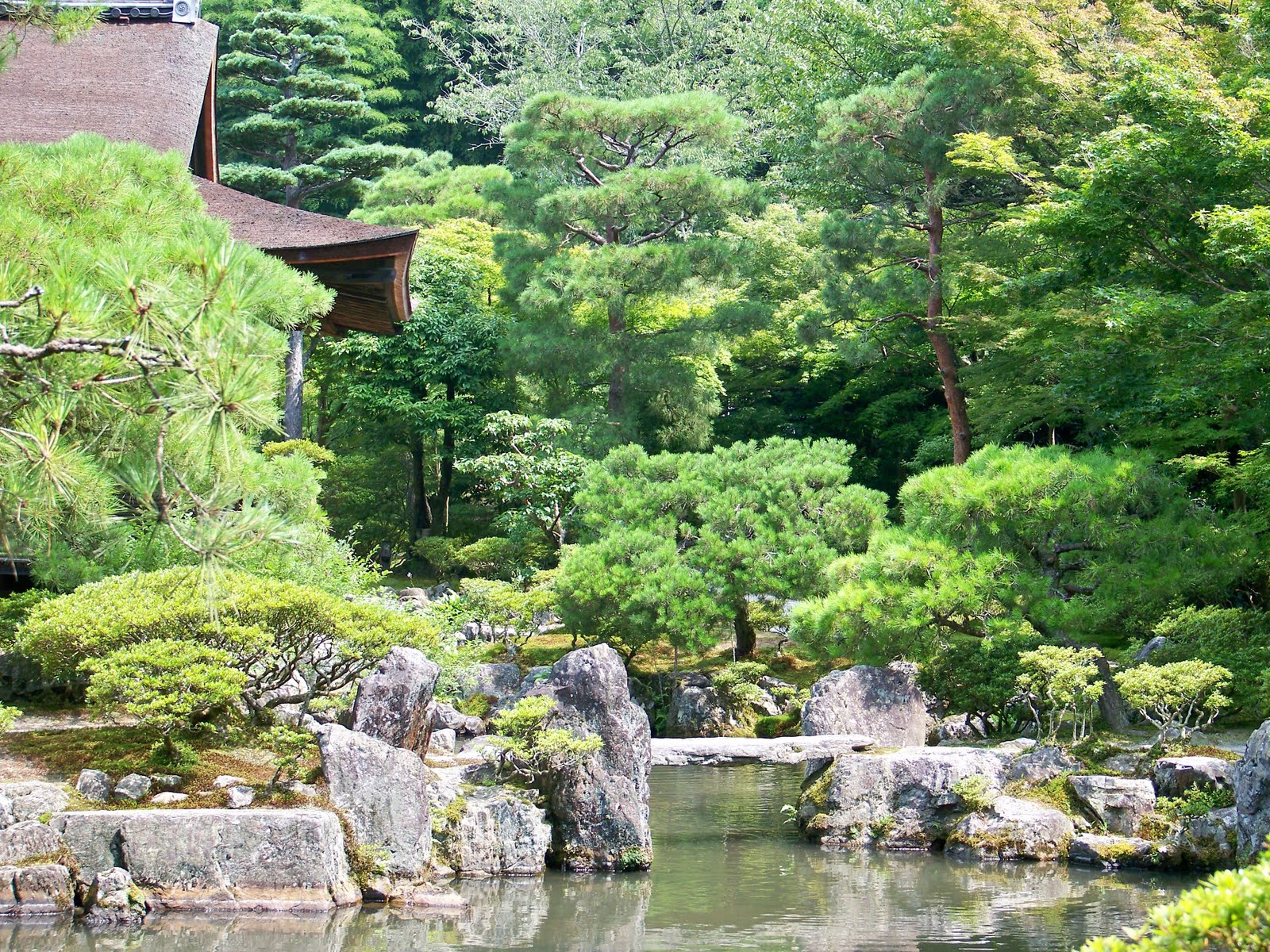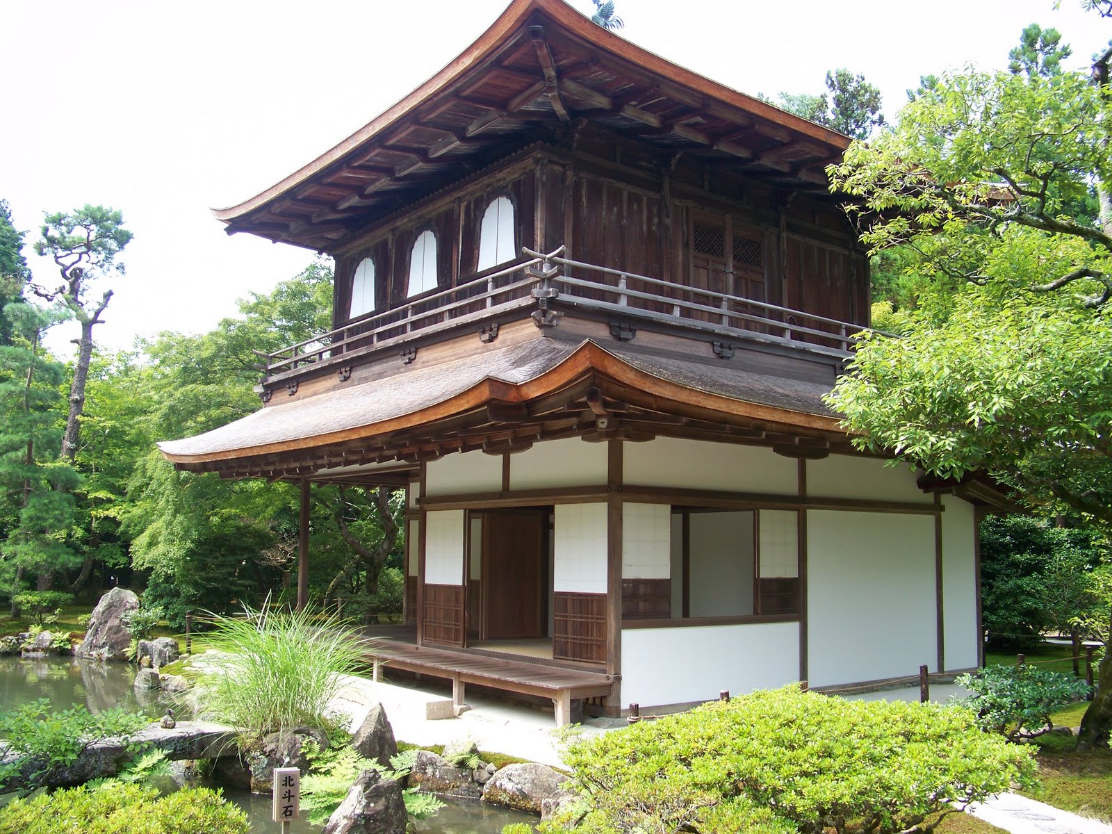 Construït al 1482, es va fer amb el propòsit de convertir-se en un luxós “retiro campestre” de Ashikaga Yoshimasa, pensava recobrir-lo de pa de plata, però el pressupost es va acabar i no es va arribar a recobrir mai. Aquest temple, queda a dalt d’un turó d’on es poden gaudir d’unes magnífiques vistes a tot Kyoto. La veritat com podeu veure és preciós, envoltat d’un jardí meravellós.